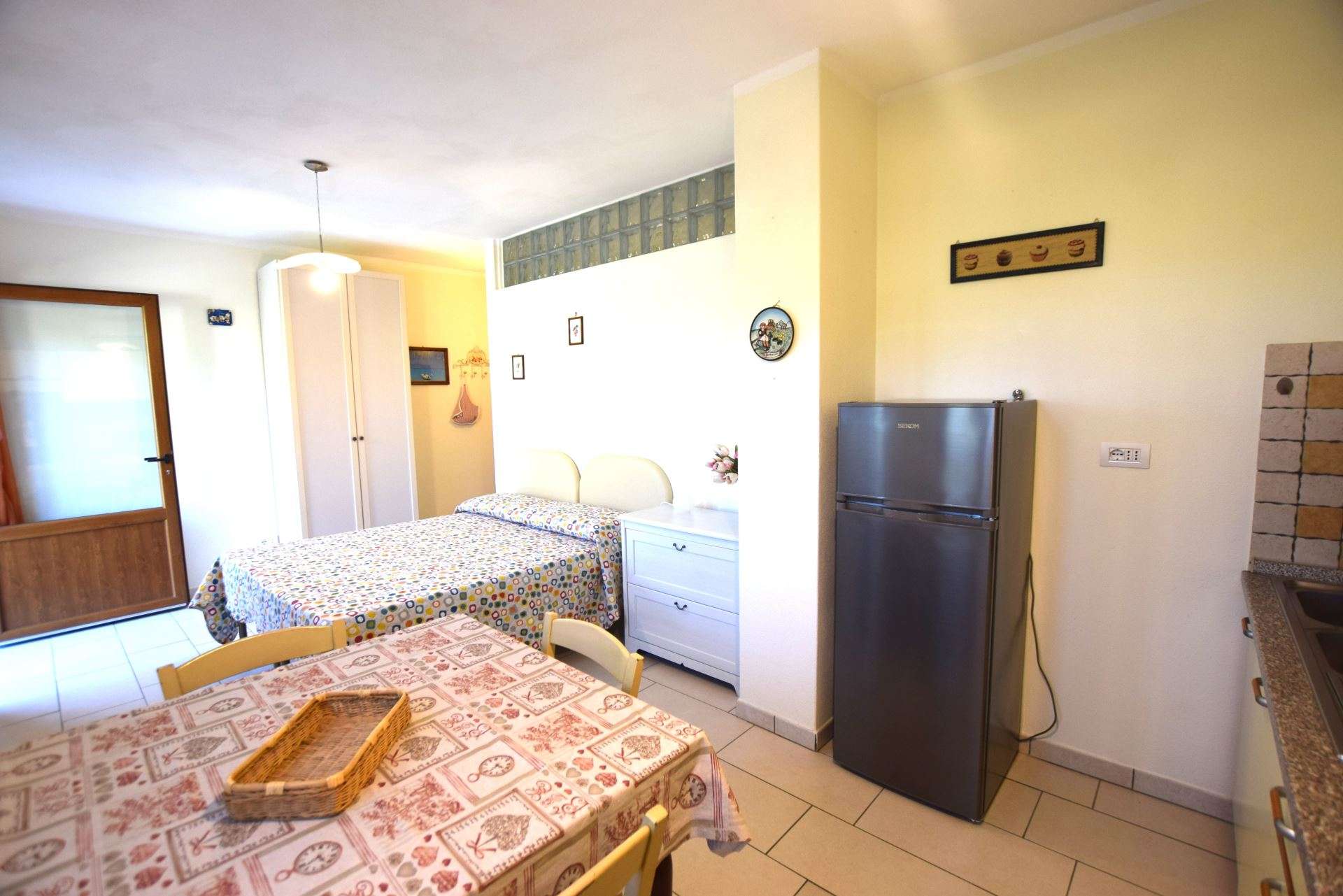 Ubicato in zona tranquilla a pochi minuti da Marina di Campo, grazioso bilocale di nuova ristrutturazione situato al piano terra di una palazzina plurifamiliare. L'appartamento è composto da soggiorno con angolo cottura con piano a induzione e divano letto , camera matrimoniale, bagno con box doccia. Dispone di TV, forno a microonde, aria condizionata (con supplemento) , posto auto. Spazio esterno recintato e attrezzato per mangiare all'aperto. Animali ammessi su richiesta. Biancheria non disponibile. Camera matrimoniale in fase di completamento