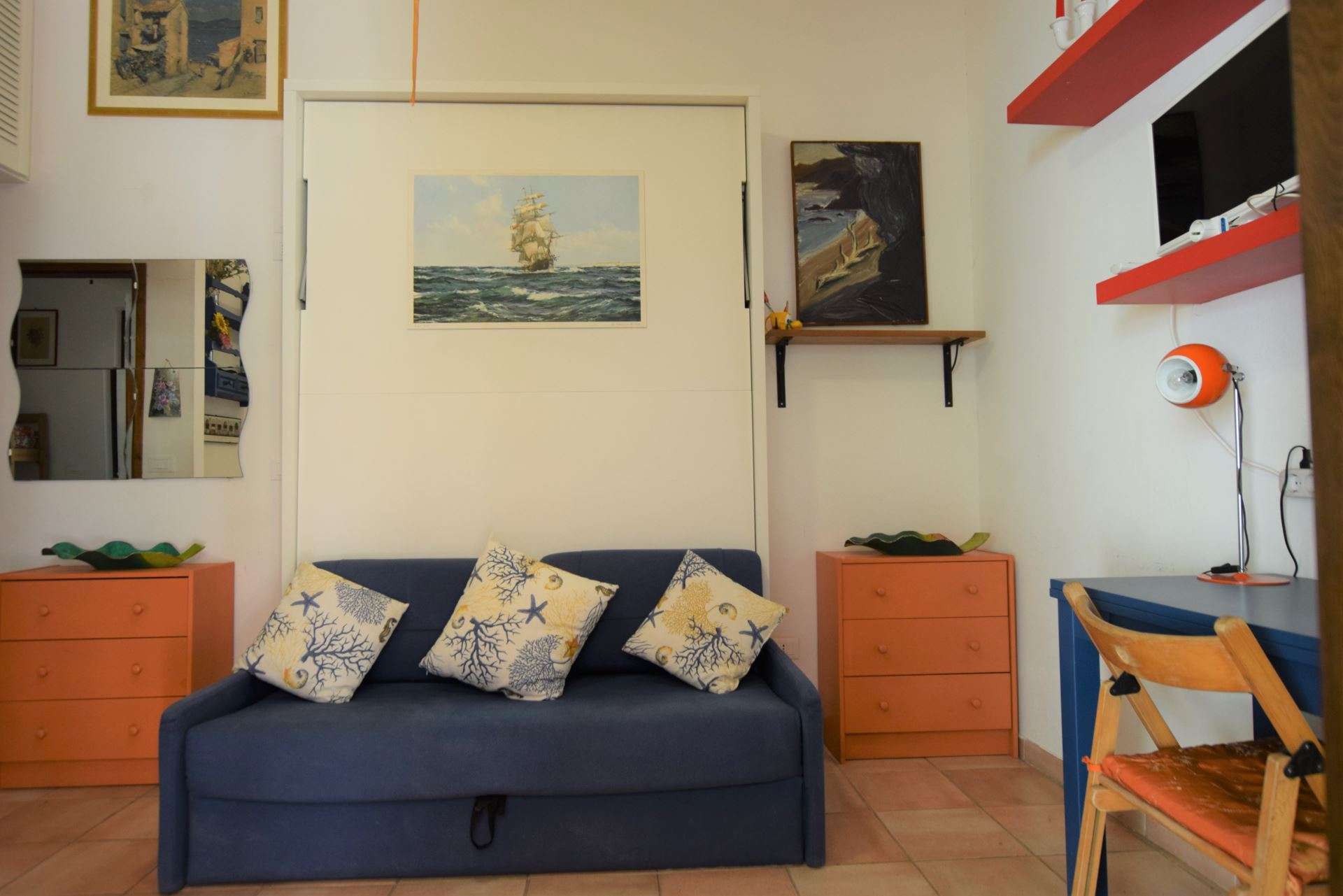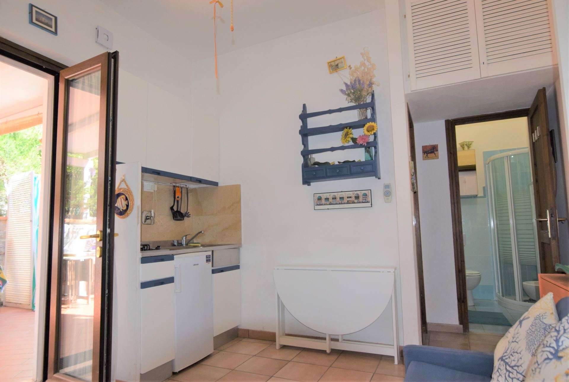 Il piccolo appartamento è situato al piano terra ed è composto da soggiorno con angolo cottura, divano, letto matrimoniale a scomparsa, tv, bagno con box doccia, cameretta con letto a castello. Dispone di spazio esterno privato lastricato, recintato, ombreggiato e attrezzato per mangiare fuori, cucina esterna con fornelli, forno a microonde, frigo con congelatore, lavastoviglie, Wifi, doccia calda esterna, lavatrice in comune con altro appartamento. Completano la proprietà aria condizionata, ventilatore a soffitto, zanzariere e posto auto privato. Animali ammessi solo di piccola taglia. Biancheria non disponibile.