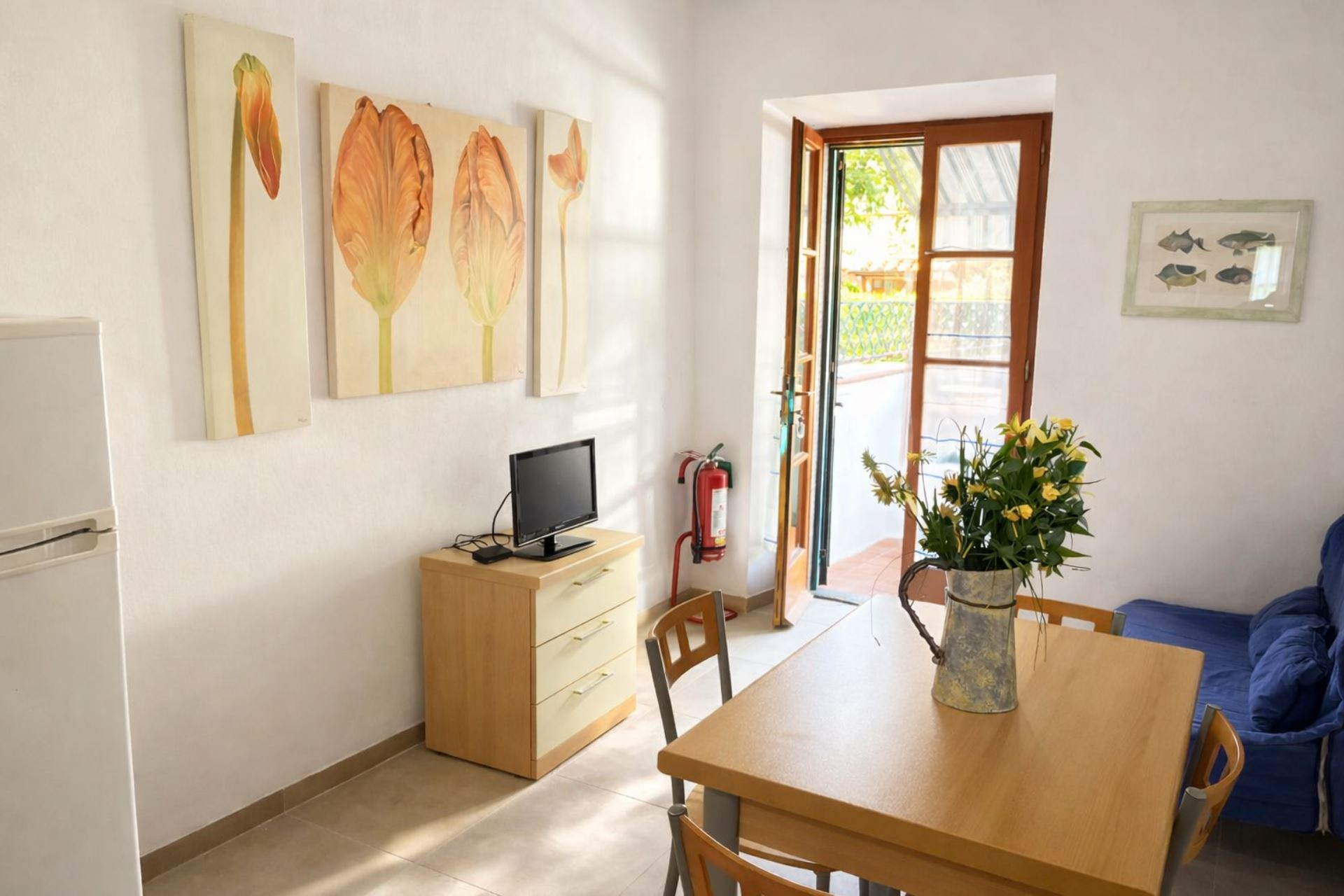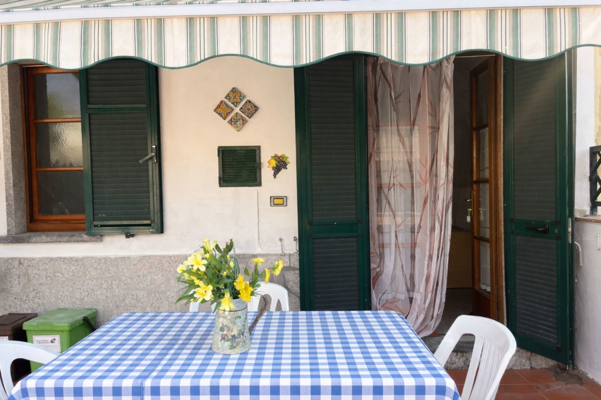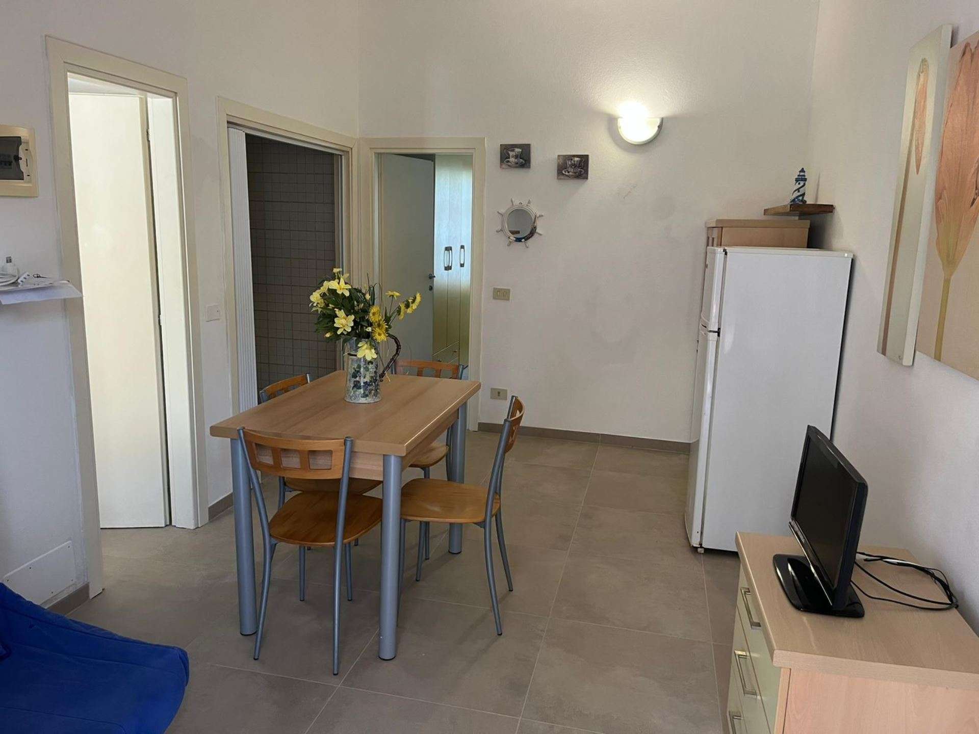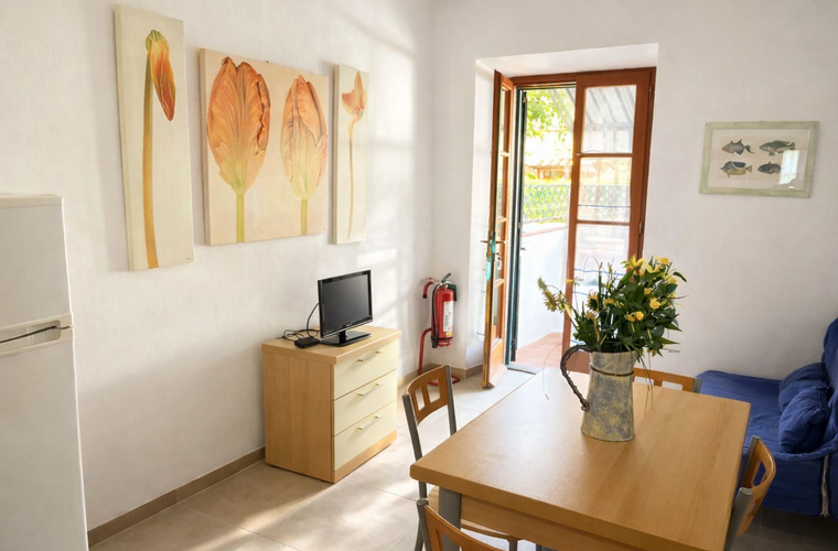 Comodo bilocale situato al piano terra, composto da soggiorno con divano letto ad una piazza e mezzo, angolo cottura, camera matrimoniale, bagno con box doccia e lavatrice. Dispone di TV , posto auto riservato a circa 300 mt di distanza. e terrazzo attrezzato con tavolo e sedie con tenda ombreggiante, L'appartamento si trova all'interno di una zona a traffico limitato alla quale si può accedere sono il giorno di arrivo e di partenza. Animali ammessi (con supplemento). Biancheria non inclusa. Non sono accettati gruppi di ragazzi minorenni.