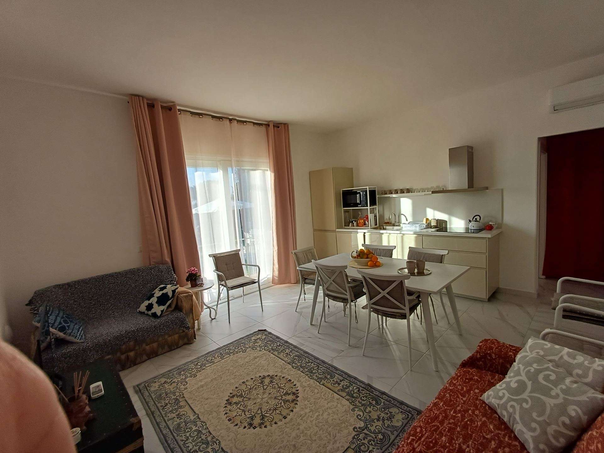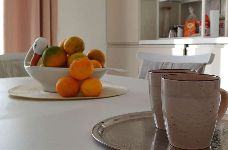 Große Wohnung im Erdgeschoss mit separatem Eingang, bestehend aus einem Wohnzimmer mit Kochnische, ausgestattet mit Induktionskochfeld, Backofen/Mikrowelle und Geschirrspüler. Das Wohnzimmer ist mit einem Doppelschlafsofa ausgestattet. Schlafzimmer mit Doppelbett, Schlafzimmer mit zwei Einzelbetten und Badezimmer mit Dusche. Ausgestattet mit WLAN, Klimaanlage, Waschmaschine. Außenbereich mit Tisch, Stühlen und Sonnenschirm für Mahlzeiten im Freien und grill. Parkplatz. Bettwäsche and Handtücher nicht imbegriffen.