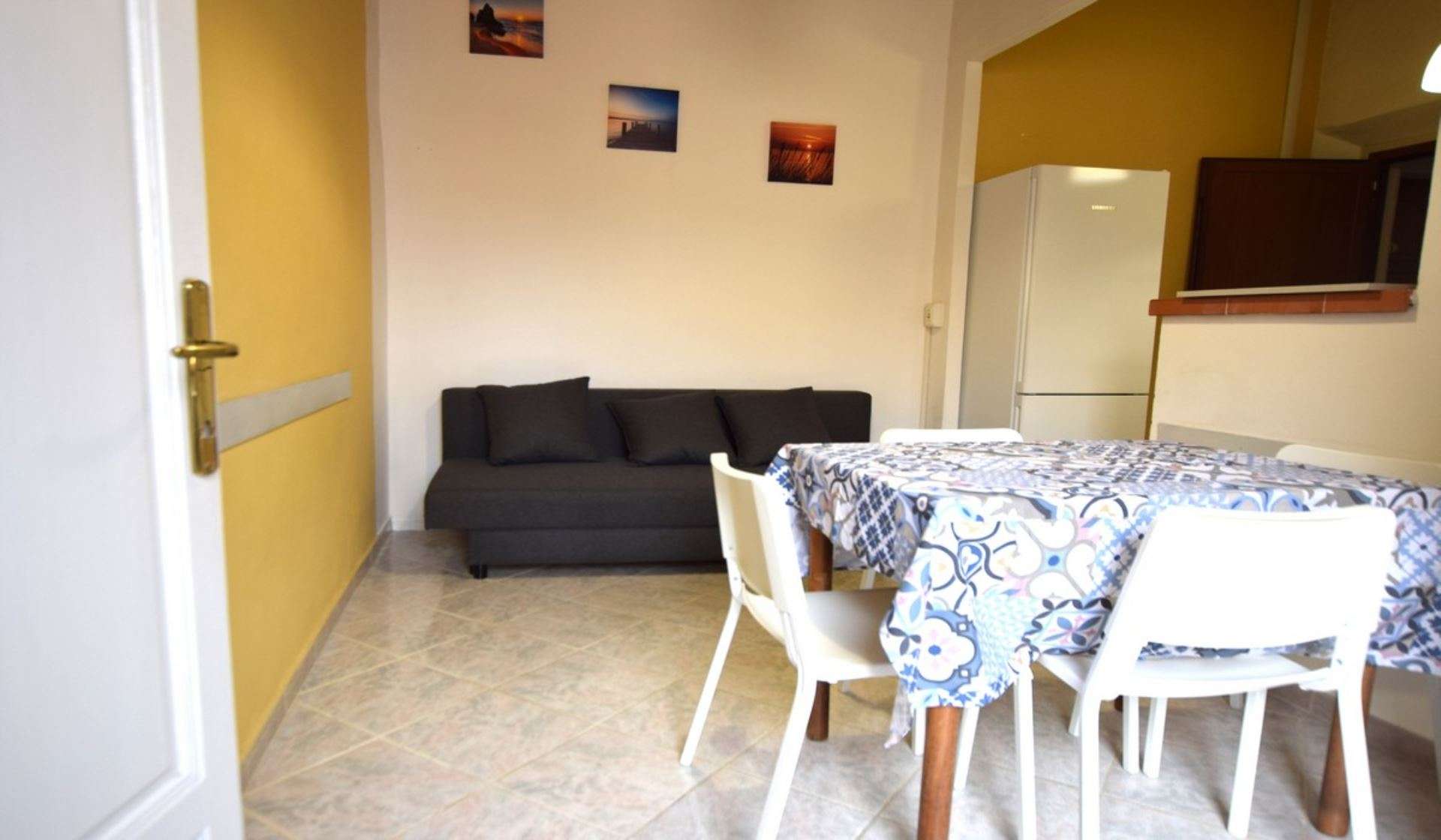 Die Zweizimmerwohnung befindet sich im ersten Stock einer Wohnanlage ohne Aufzug und besteht aus einem Wohnzimmer mit Doppelschlafcouch und Kochnische mit Induktionskochfeld, großem Schlafzimmer mit Doppelbett, Badezimmer mit Dusche. Es verfügt über Fernseher, Waschmaschine und Klimaanlage. Kleiner privater, ausgestatteter und umzäunter Außenbereich im Erdgeschoss mit Zugang zur Außenseite des Gebäudes. Parkplätze nicht verfügbar. Möglichkeit der Bereitstellung von Bettwäsche und Handtüchern bei Reservierung gegen Aufpreis. Gruppen von Minderjährigen werden nicht akzeptiert.
