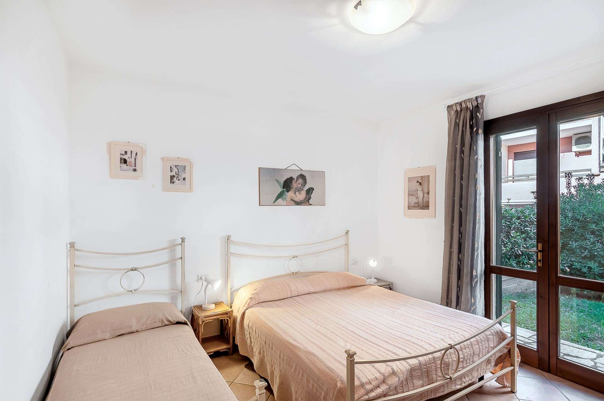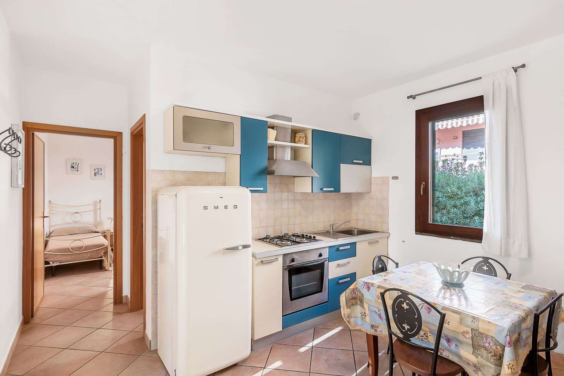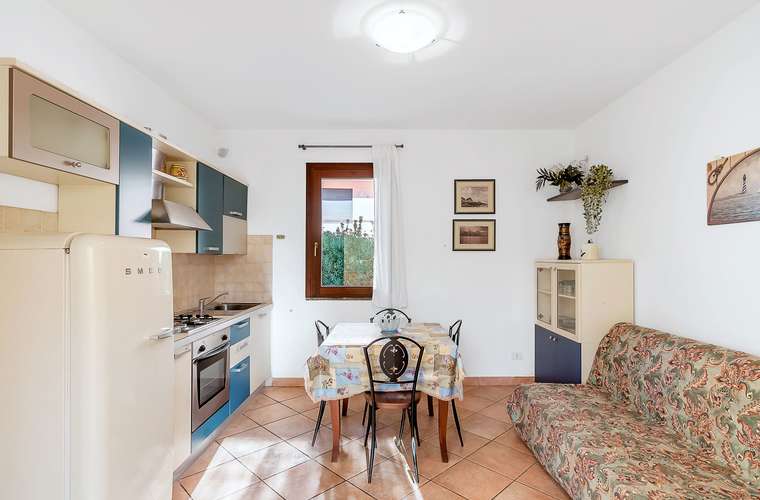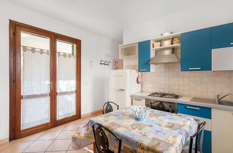 Schöne Wohnung im Erdgeschoss besteht aus Wohnzimmer mit Küchenzeile und Doppelschlafsofa. Schlafzimmer mit Doppelbett und Einzelbett, Bad mit Dusche. Außerhalb Hauswirtschaftsraum mit Waschmaschine. Es hat auch Klimaanlage, einen Backofen, eine Veranda mit Tisch und Stühlen, , umzäunter Garten, Parkplätze und zusätzliche kleine Gärtchen an der Rückseite. Haustiere sind erlaubt (mit Zuschlag).
