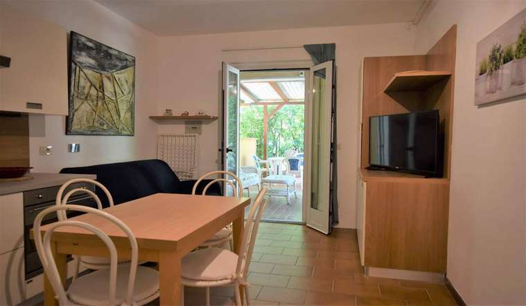 Nur 200 Meter vom Strand von Fetovaia entfernt, im Erdgeschoss mit separatem Eingang, Zweizimmerwohnung bestehend aus einem Wohnzimmer mit Kochnische mit Induktionsherd und Doppelschlafsofa, Badezimmer mit Duschkabine, Schlafzimmer mit Doppelbett. Ausgestattete Veranda und kleiner umzäunter Garten. Ausgestattet mit TV, Wi-fi, Backofen, Geschirrspülmaschine, Parkplatz. Haustiere gegen Aufpreis erlaubt. Bettwäsche und Handtücher nicht eingeschlossen