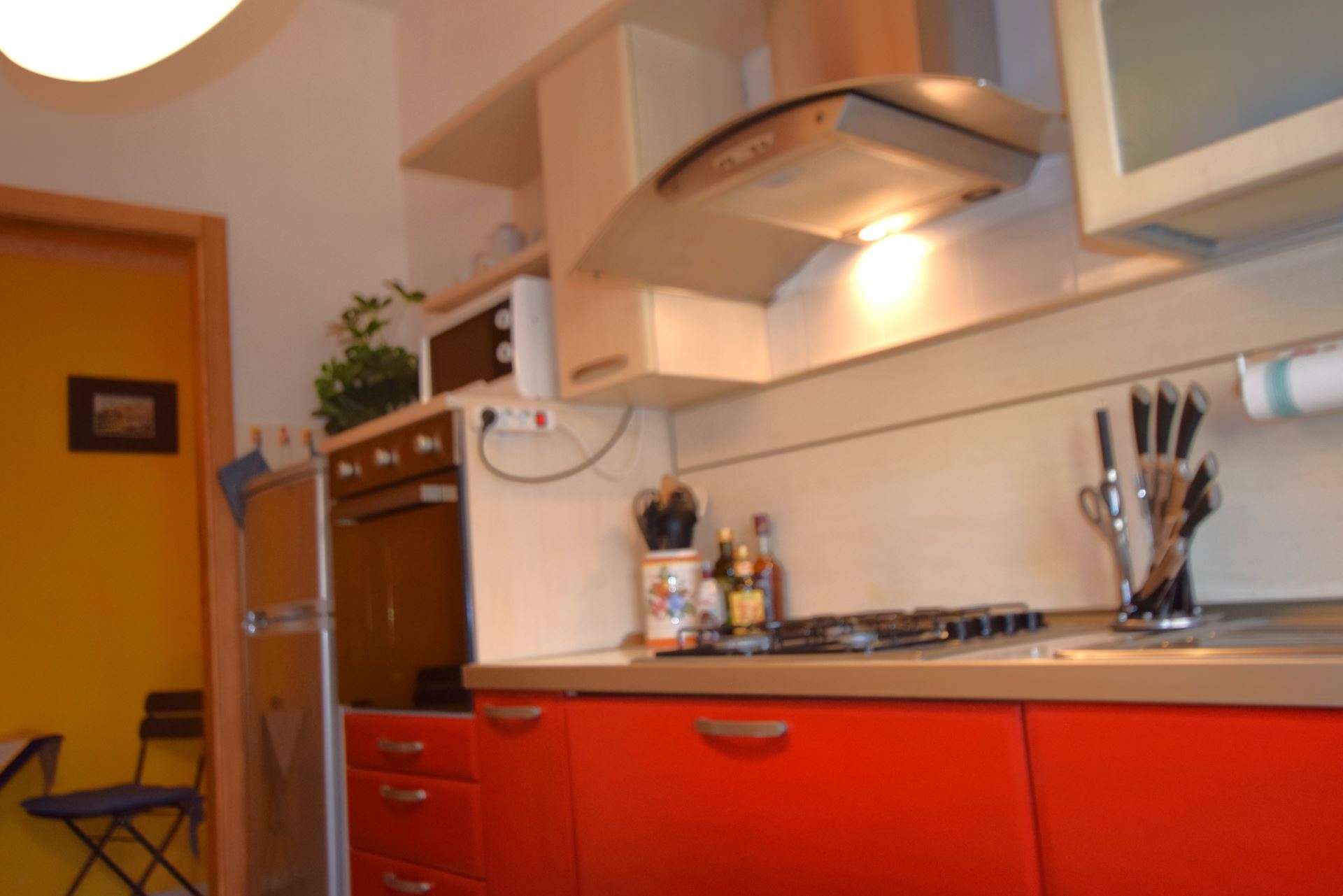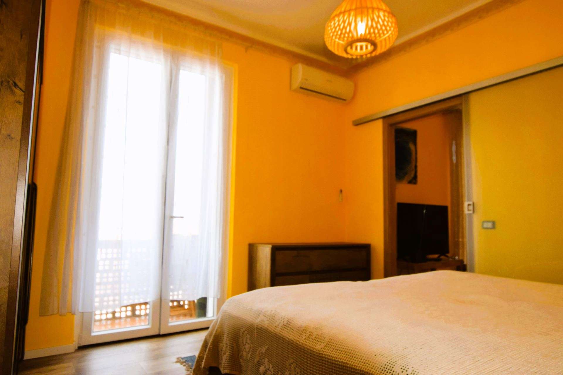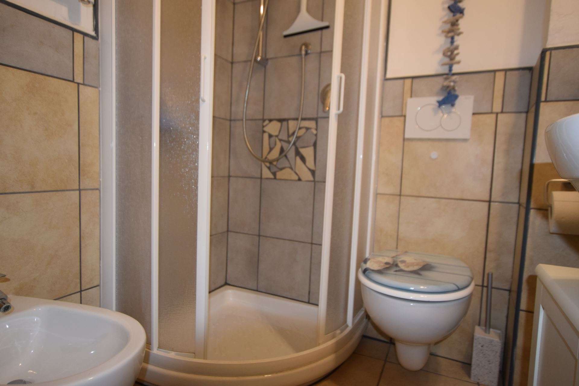 Located on the second floor of a condominium complex with lift, the apartment is composed of: living room with double sofa bed and balcony overlooking the sea, double bedroom with en-suite bathroom and balcony, large fully equipped kitchen with balcony, double bedroom with balcony, bathroom with shower. The apartment is equipped with TV, wi-fi, washing machine,air conditioning only in the bedrooms . Parking space about 600 meters away. Small pets allowed only on request. Groups of children are not accepted in the apartment.
