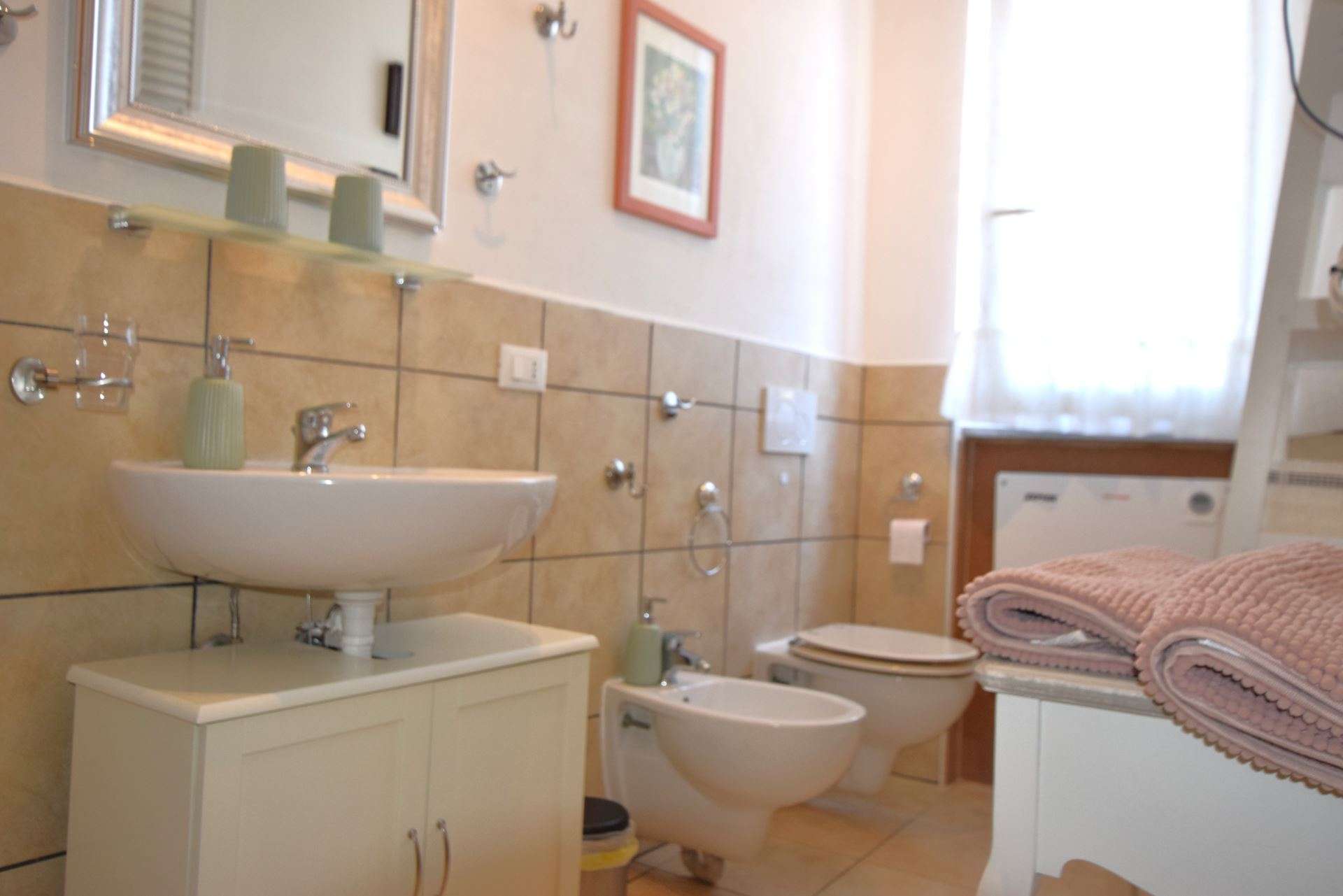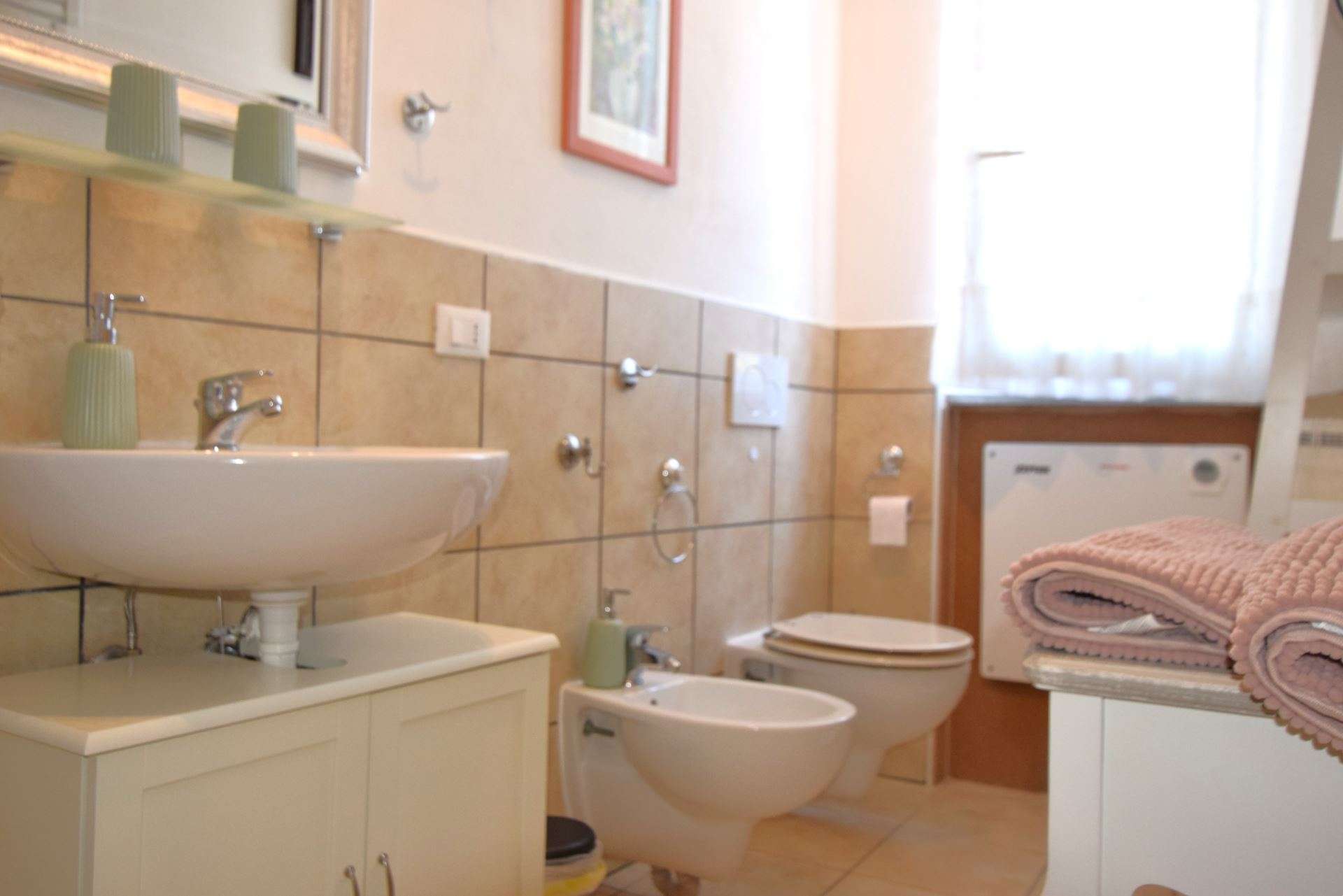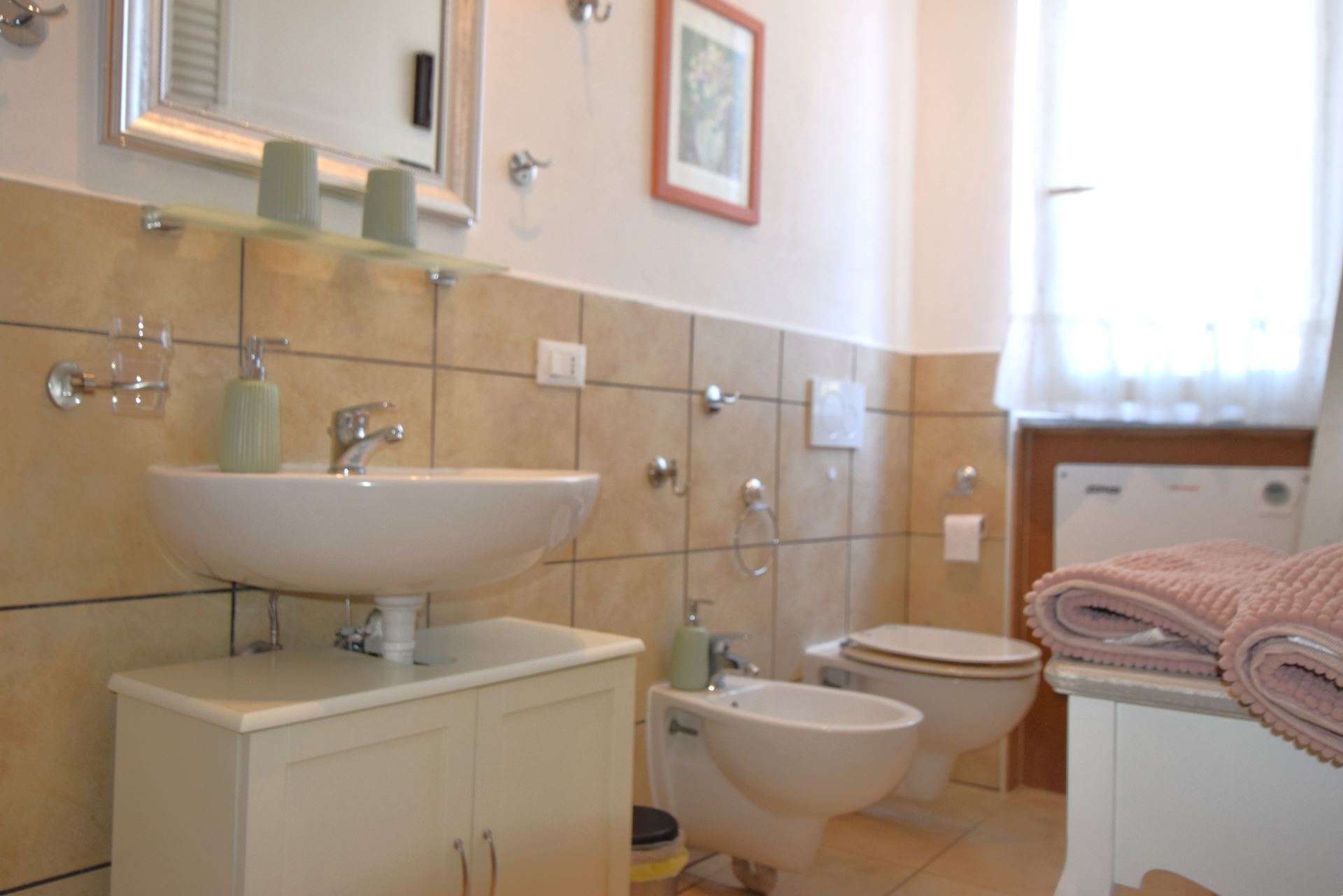 Located on the second floor of a condominium complex with lift, the apartment is composed of: living room with double sofa bed and balcony overlooking the sea, double bedroom with en-suite bathroom and balcony, large fully equipped kitchen with balcony, double bedroom with balcony, bathroom with shower. The apartment is equipped with TV, wi-fi, washing machine,air conditioning only in the bedrooms . Parking space about 600 meters away. Small pets allowed only on request. Groups of children are not accepted in the apartment.