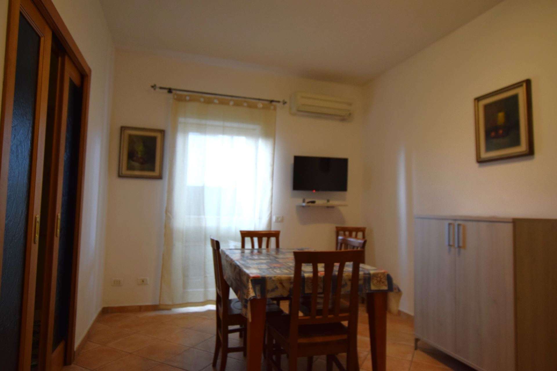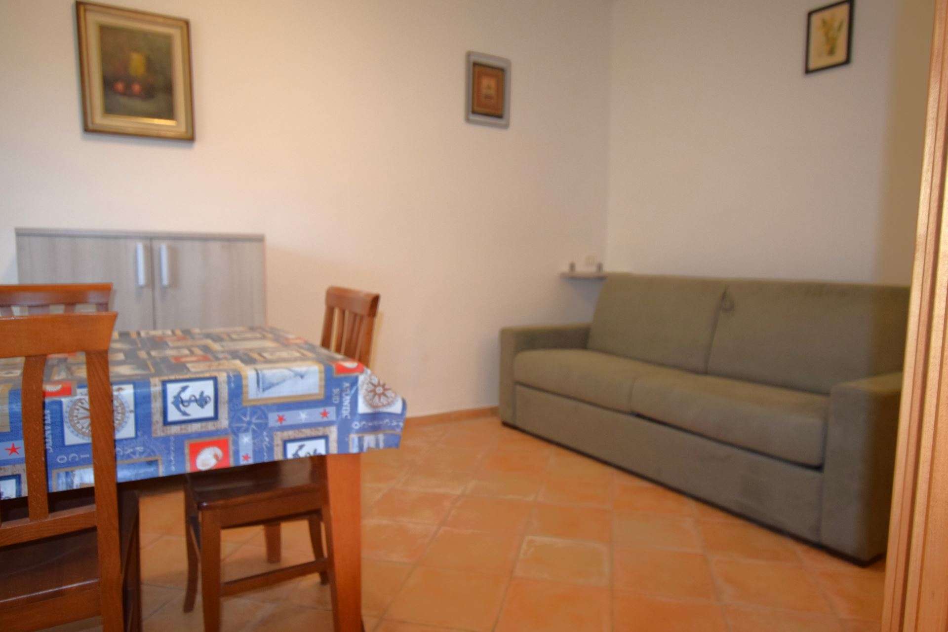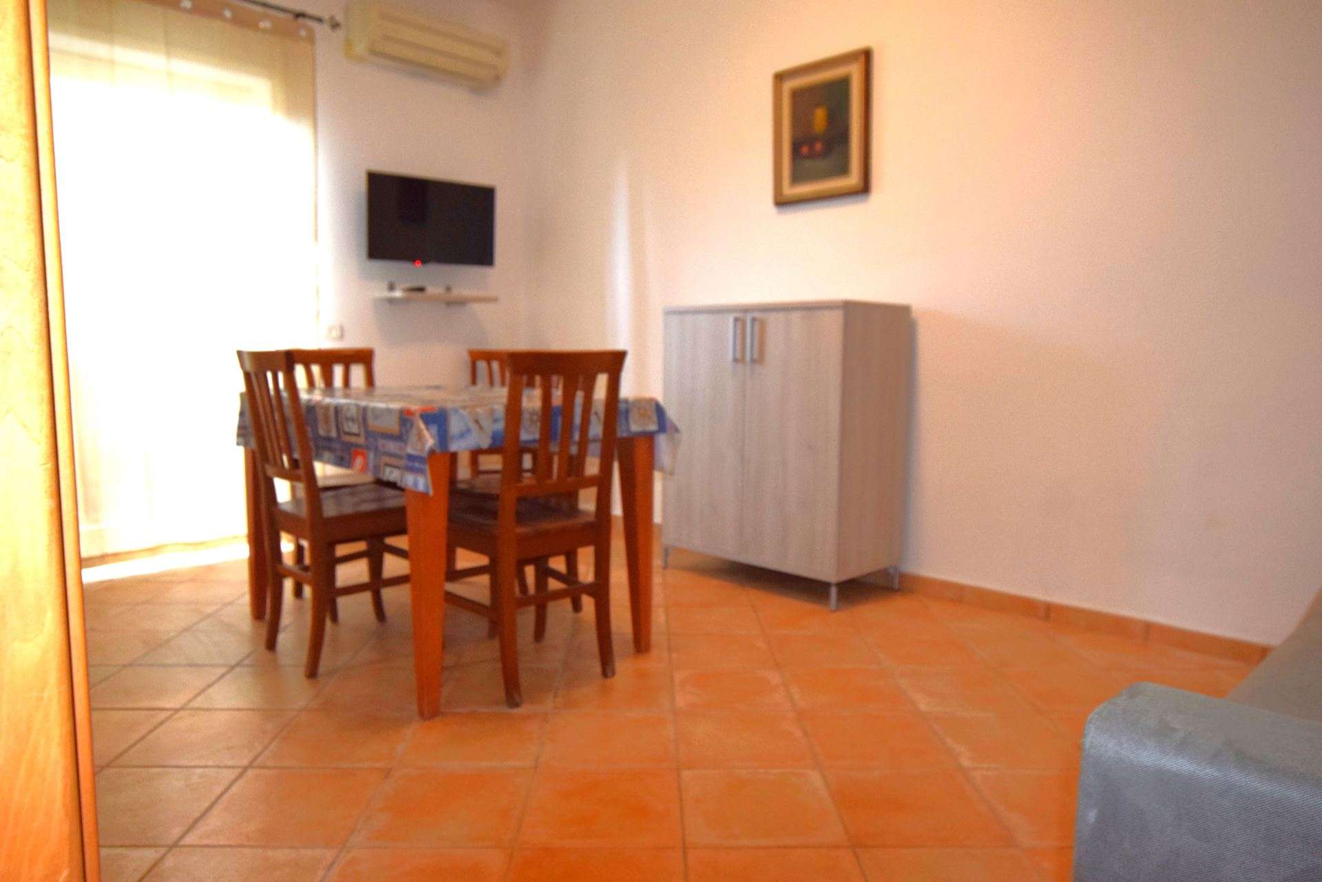 Ampio bilocale situato al piano terra di un condominio, al suo interno si compone di disimpegno, angolo cottura separabile dal soggiorno tramite porta scorrevole, soggiorno con divano letto matrimoniale e tv, camera matrimoniale, bagno con box doccia. L'appartamento dispone di lavatrice, forno, aria condizionata (disponibile nella camera e nel soggiorno), posto auto privato a circa 130 mt dalla struttura e piccola terrazza dalla quale, tramite cancellino, si raggiunge comodamente in pochi minuti a piedi la spiaggia. Animali ammessi con supplemento. Biancheria disponibile con supplemento. Non sono accettati gruppi di ragazzi minorenni.